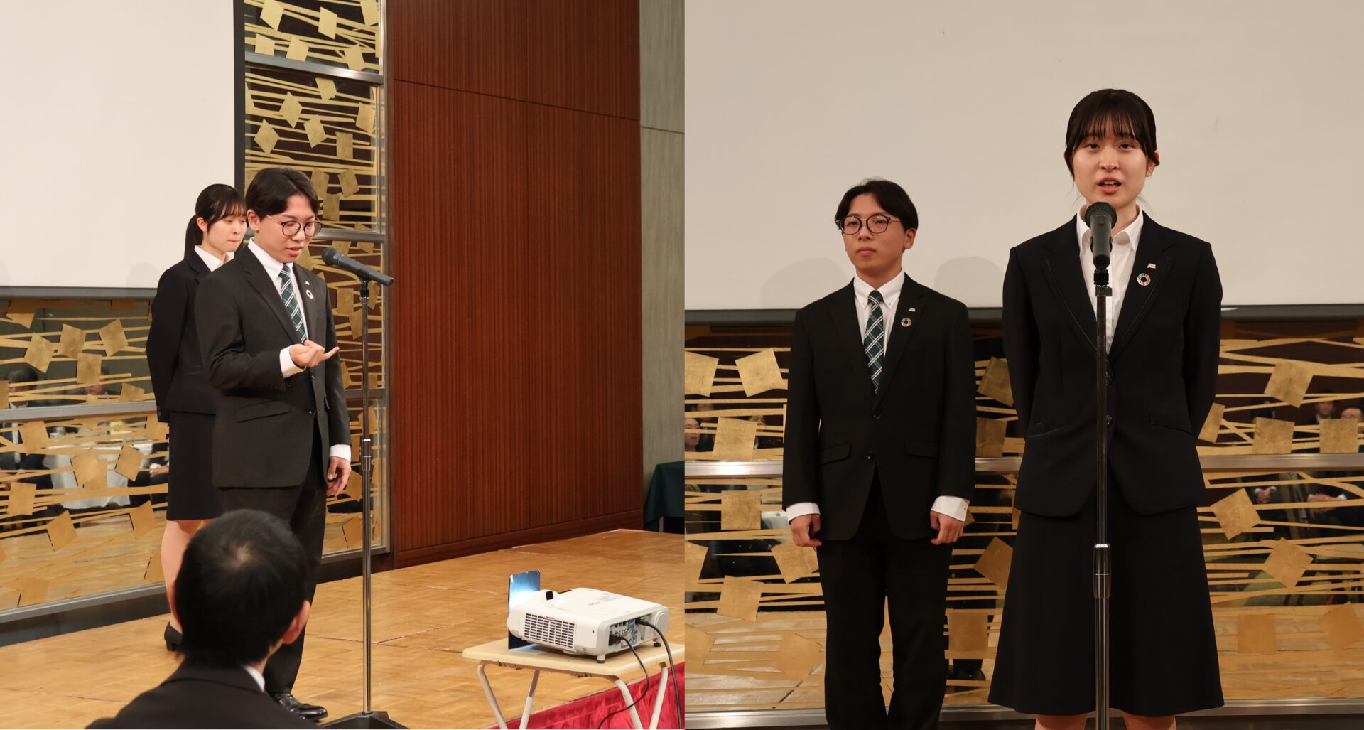 懇親会は、瀧上社長からの温かい歓迎の挨拶で始まり、続いて新入社員2名による自己紹介が行われました。フレッシュな意気込みと抱負を語る姿に、会場全体が明るい雰囲気に包まれます。
