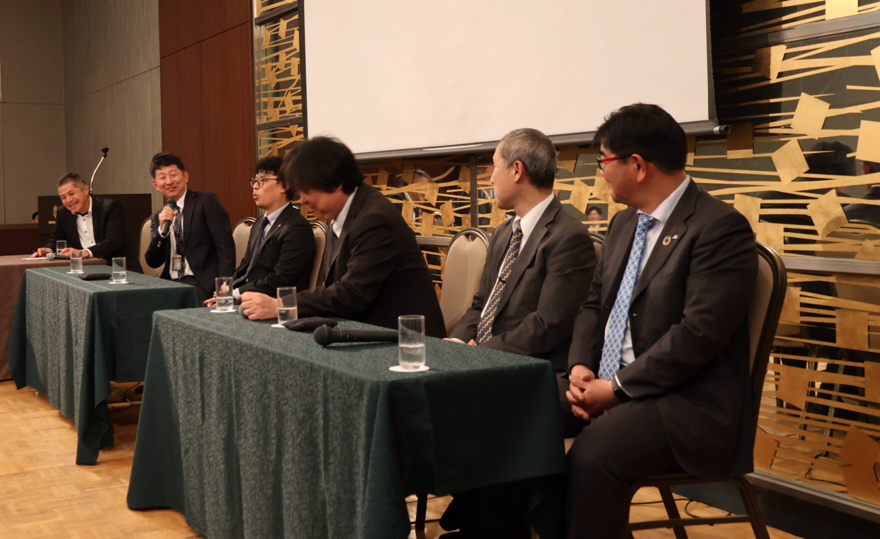 懇親会の第二部では大友監査役をファシリテーターとして各技術部署の部署長によるパネルディスカッションを行いました。改めてその部署の役割や今現在注力していることなどを社員一同で共有し、フレッシュな人材と共に、新たな挑戦への一歩を踏み出すことができました。